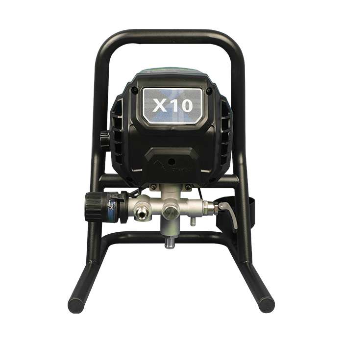 The X10 is a airless sprayer which has a compact size, professional finish, easy to step on / use and clean. It is perfect for small-to-midsize household project such as interior / exterior walls and ceilings, decks, door, fence… Can spray interior paint, varnish,oil-based paints, primer, etc. The speed regulator will let the sprayer handle large tip size or small tip size at stable pressure .