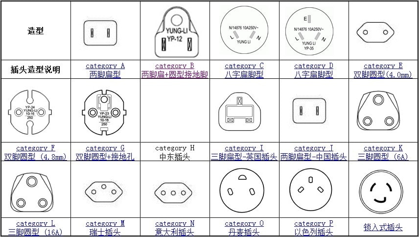Different plug of each country